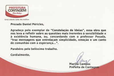 CARTÃO DA PREFEITA MARÍLIA CAMPOS (PREFEITA DE CONTAGEM/MG)