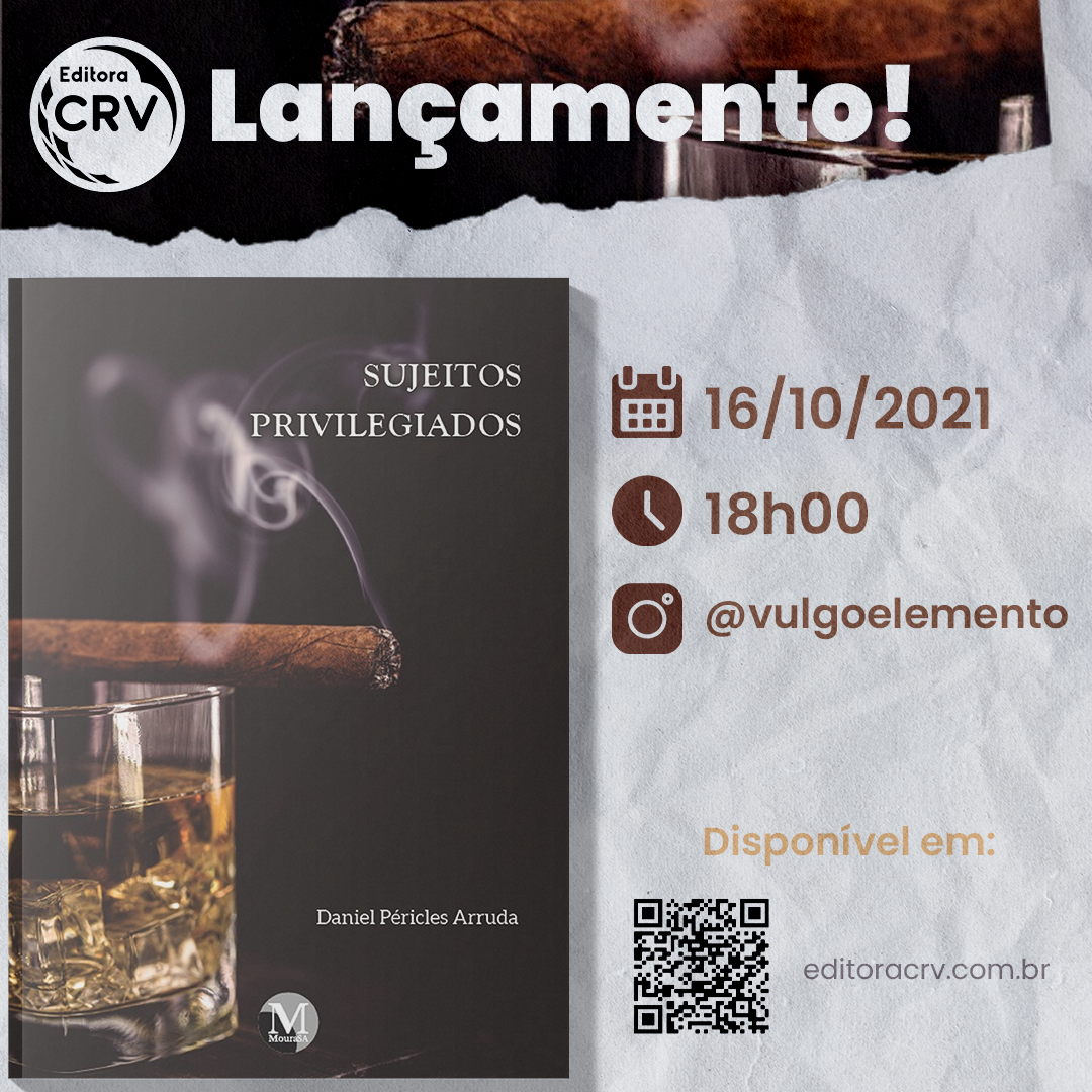 Compartilho com vocês o convite de lançamento do meu livro Sujeitos Privilegiados. Será no dia 16/10/21, sábado, às 18h, via Instagram: @vulgoelemento. Clique aqui para assistir.